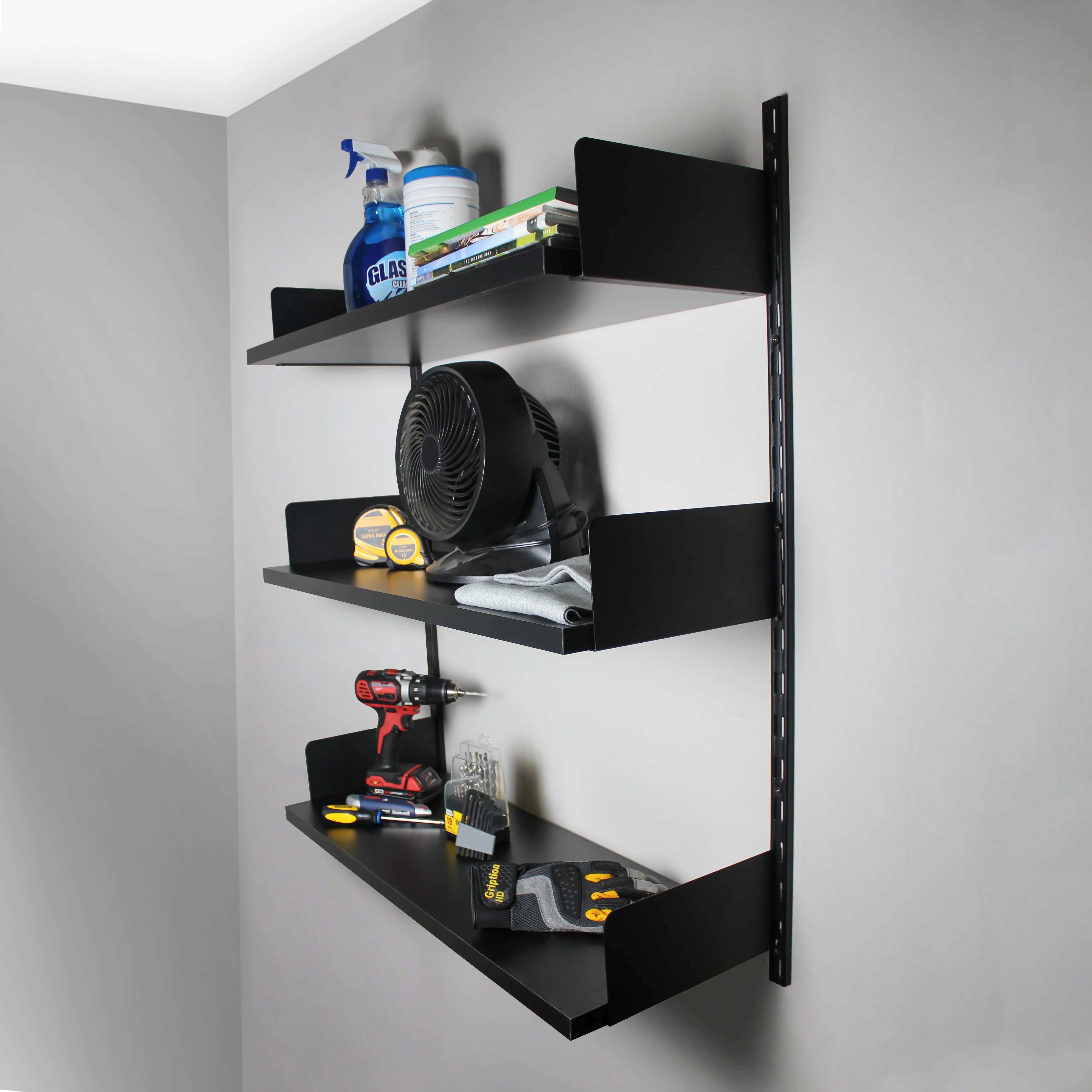The Wall Slot shelving system is a simple and functional storage solution that can be used in your workplace, living room, garage, or any other space. With bookend brackets, you can keep everything well-organized and in place. Whether you want to showcase your decor or store books, the Wall Slot shelf can serve all your needs.